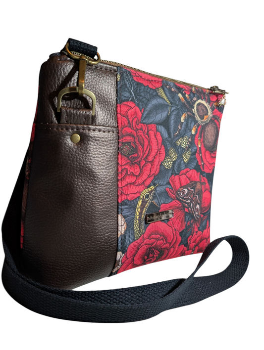 Handcrafted purse crossbody brown floral