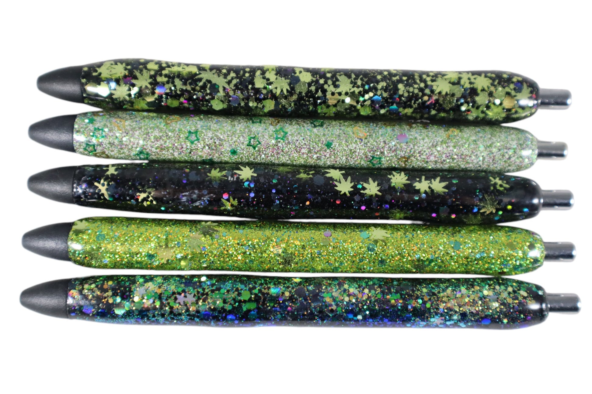 This listing is for ONE of the pictured glitter pens. Please select your choice from the options below. They will be listed from top to bottom in the picture. These pens can be refillable with Energel 0.7mm refills. If you're interested in getting your own custom pen made, please click here.