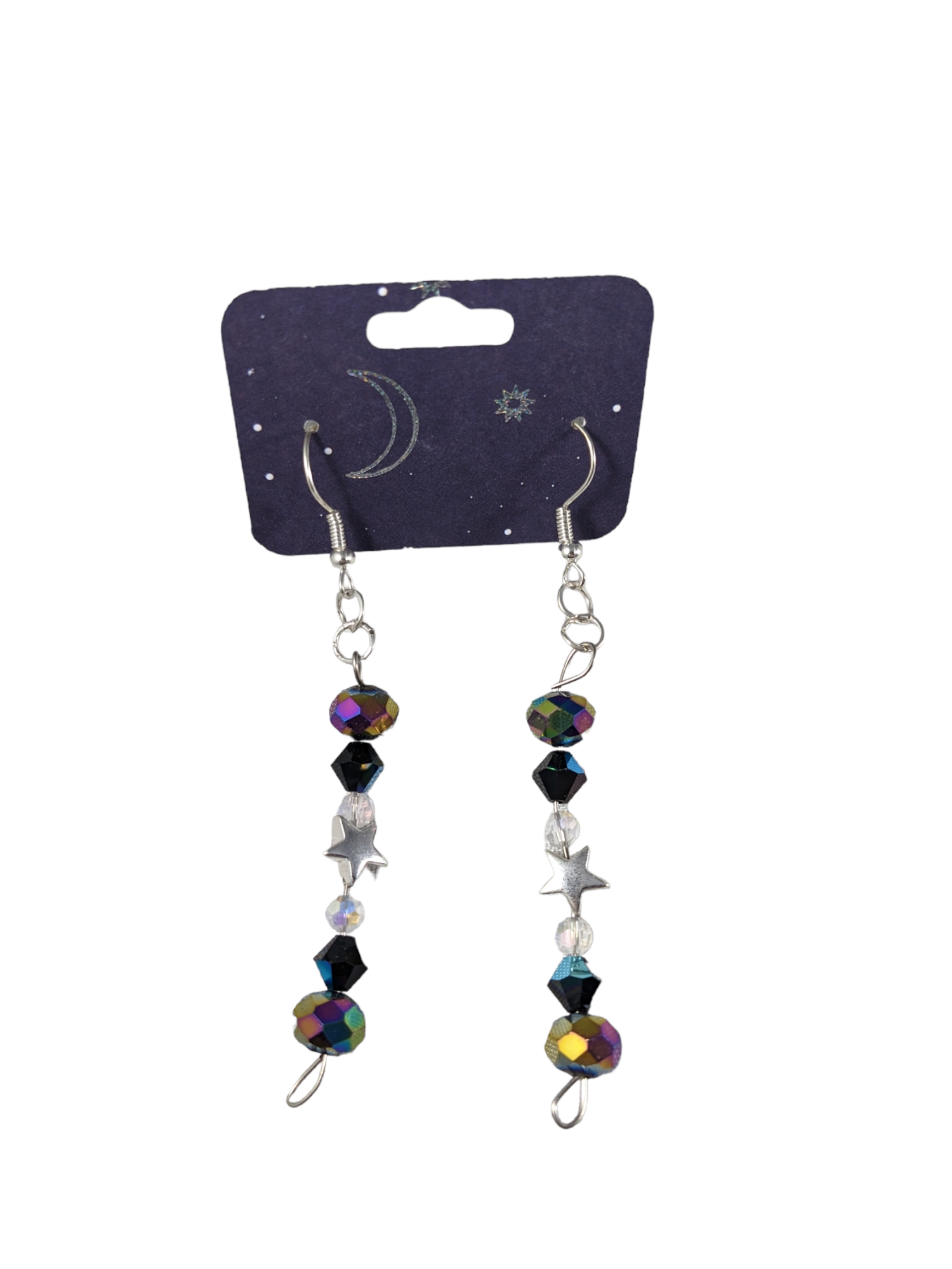 These are a pair of lovingly made beaded earrings by Lydia. They feature a mix of glass, acrylic, stone, and/or metal beads